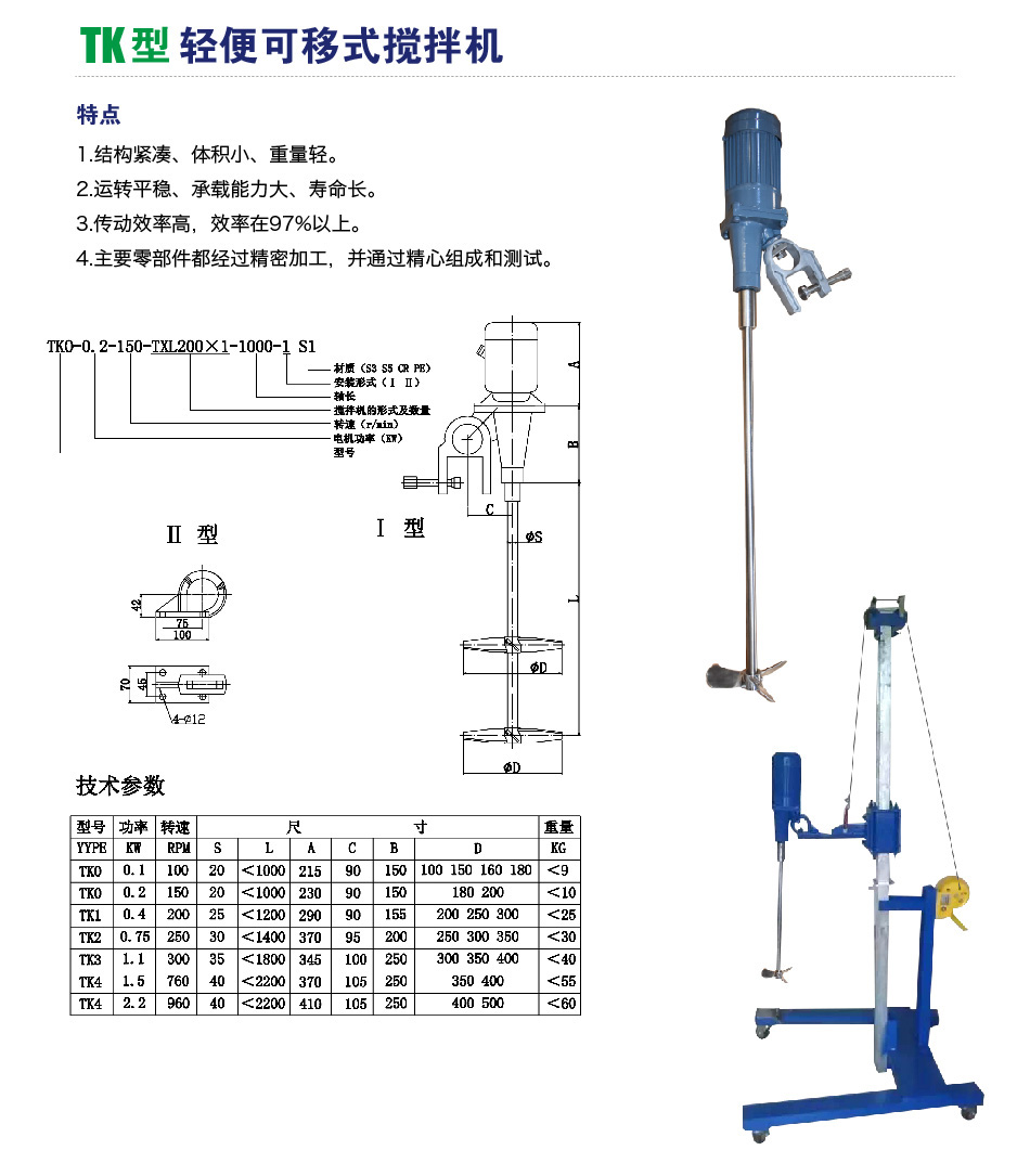 TK型轻便可移式搅拌机