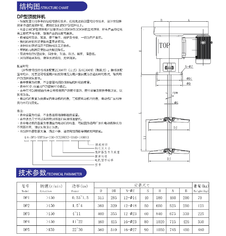 DP型顶搅拌机